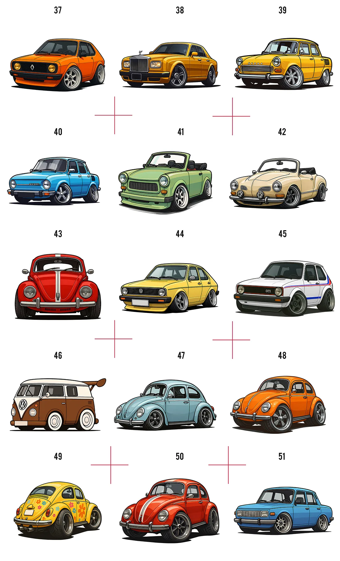 Nasz pakiet to starannie wyselekcjonowana kolekcja cyfrowych ilustracji, przedstawiających najsłynniejsze zabytkowe europejskie samochody sportowe. Każdy model został odwzorowany z dbałością o charakterystyczne linie i detale, a następnie przygotowany jako przezroczysty plik PNG. Oznacza to, że możesz swobodnie nakładać grafikę na dowolne tło – czy to na koszulce, kubku, plakacie czy w projekcie strony internetowej.